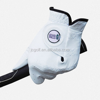 Blanco sintético de la PU de cuero guante de golf con marcador de bola